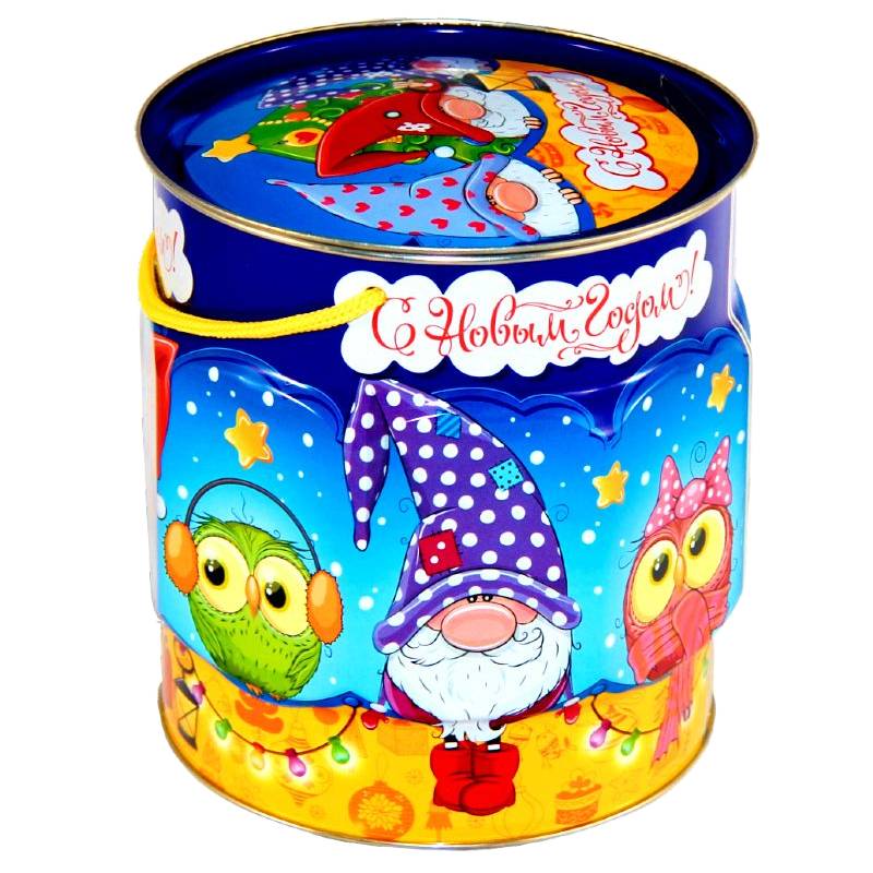 Сладкий новогодний подарок в жестяной упаковке весом 1200 грамм