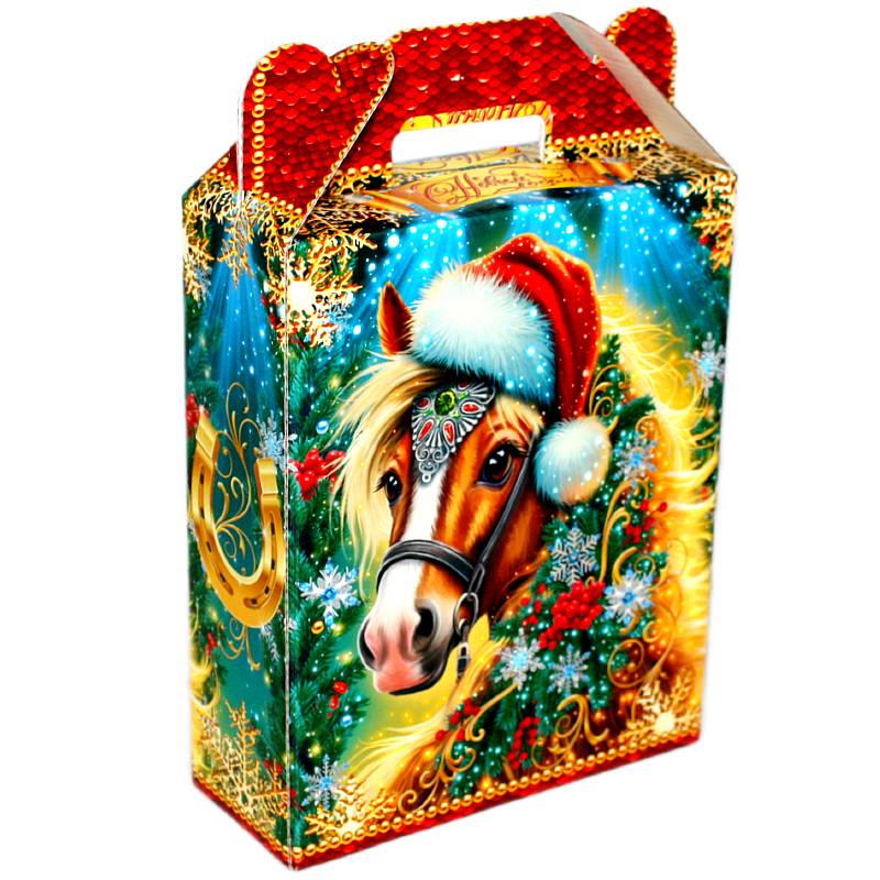 Детский новогодний подарок в картонной упаковке весом 800 грамм