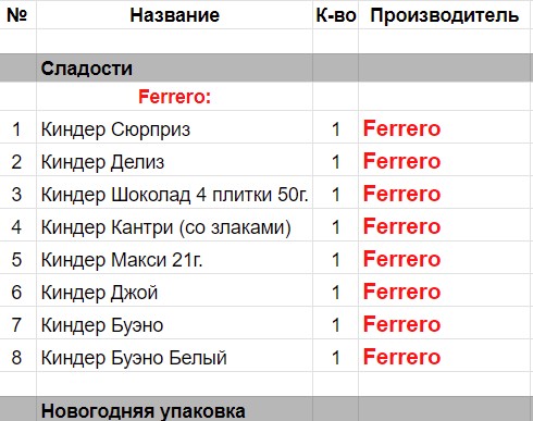 Опубликовано в Составы подарков